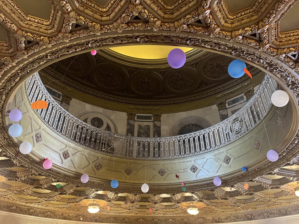 Inside the “Golden Dome,” visitors are greeted by a soaring rotunda lined with gilded plasterwork, sculpted ceiling panels, and a circular balcony that wraps around the upper level. The elaborate detailing—complete with medallions, floral motifs, and ornamental railing—was intended to evoke the grandeur of European palaces. Nearly a century later, it still reflects the ambition of the West Side in the 1920s: to create public spaces that were not just functional, but uplifting works of art. | MIKE ROMAIN