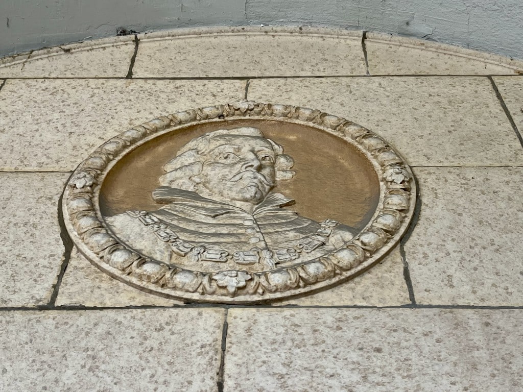 Another of the Garfield Park Fieldhouse’s carved medallions, this one portraying a stern-faced nobleman in elaborate ruffled collar and armor. Like the crowned queen nearby, he isn’t meant to depict a specific historical figure, but rather to evoke the grandeur of Old World royalty and military authority—part of the building’s 1928 Spanish Baroque Revival design language that brought a sense of dignity and theater to a West Side park. | MIKE ROMAIN