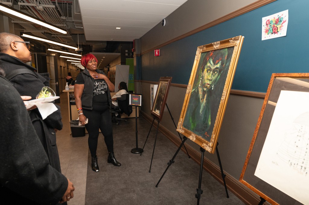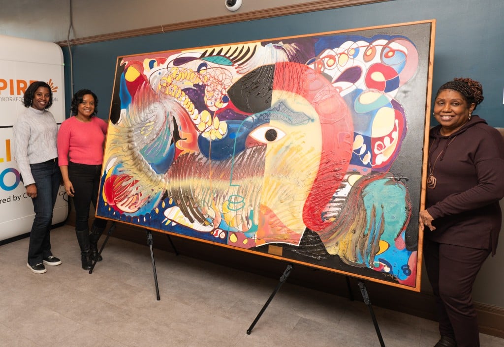 Another work, “She Wanted Colors,” by artist Mark Pressley, was commissioned by Chawanya Hayes as she prepared to open her first business. Hayes later moved to Dubai, leaving the painting in the care of family members.
