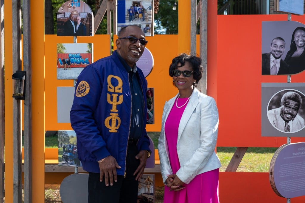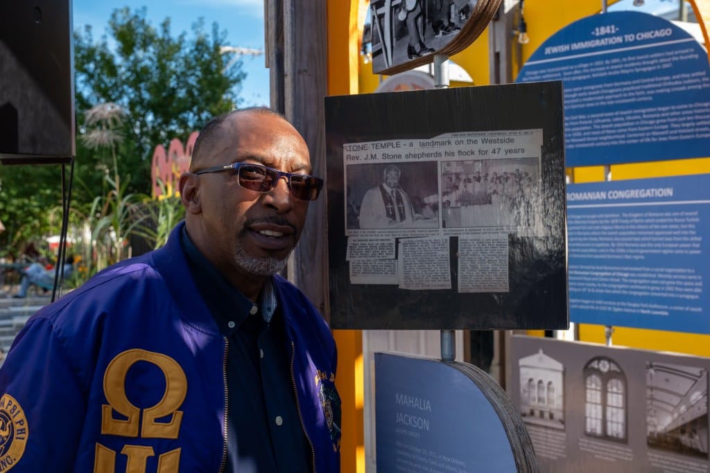 “This sukkah resides here permanently,” said Bishop Derrick Fitzpatrick, pastor of Stone Temple Baptist Church, which overlooks the festival site. He was referencing the sukkah that reflects the historic church’s rich legacy. Photos of church members—including 24th Ward Ald. Monique Scott, her brother, former 24th Ward Ald. Michael Scott, Bishop Fitzpatrick, and his wife, Pastor Reshorna Fitzpatrick—mingle with photos of the James Stone Freedom Square’s namesake, the Rev. James M. Stone, and Martin Luther King, Jr., who preached in Stone’s pulpit.