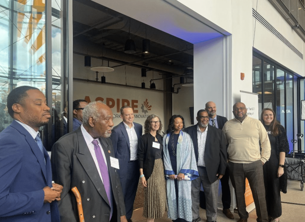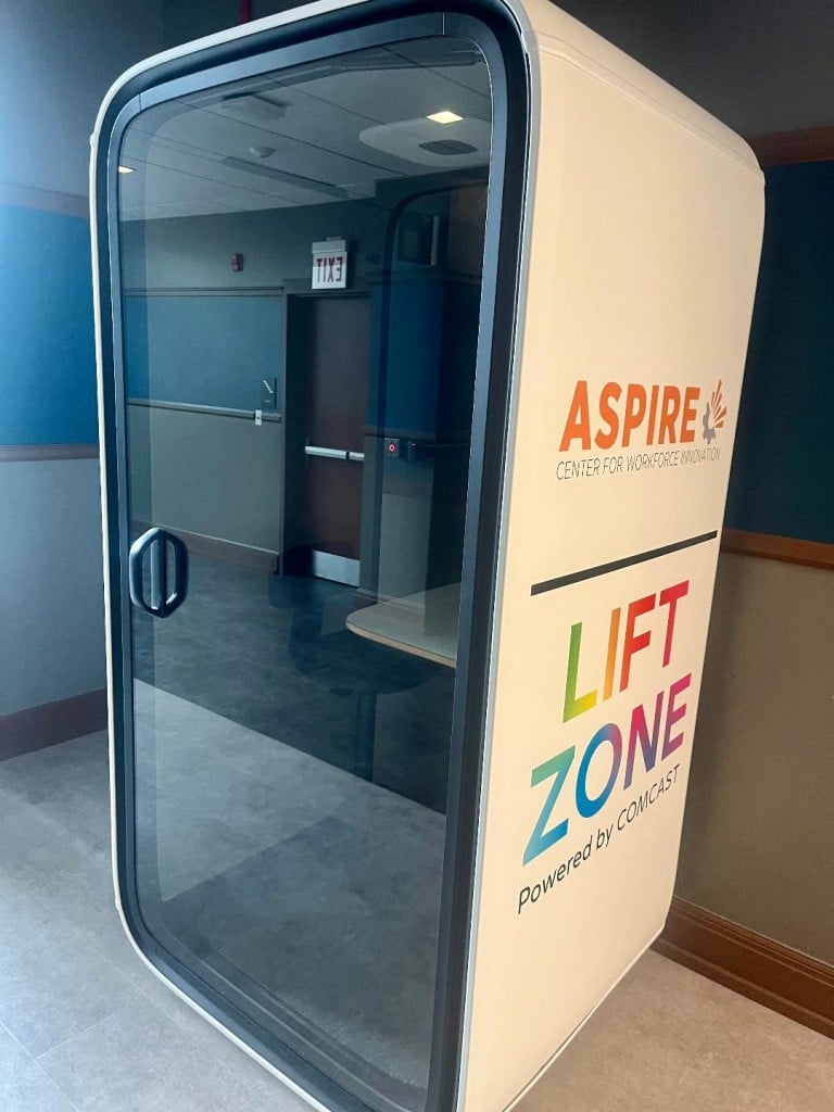 Officials, nonprofit leaders, and community stakeholders gathered at the 76,000-square-foot Aspire Center, where the Lift Zone will offer free high-speed WiFi, updated computers and digital tools, flexible classroom and meeting pods, and on-site digital skills training. These resources aim to support individuals seeking education, job-readiness training, and virtual collaboration opportunities.