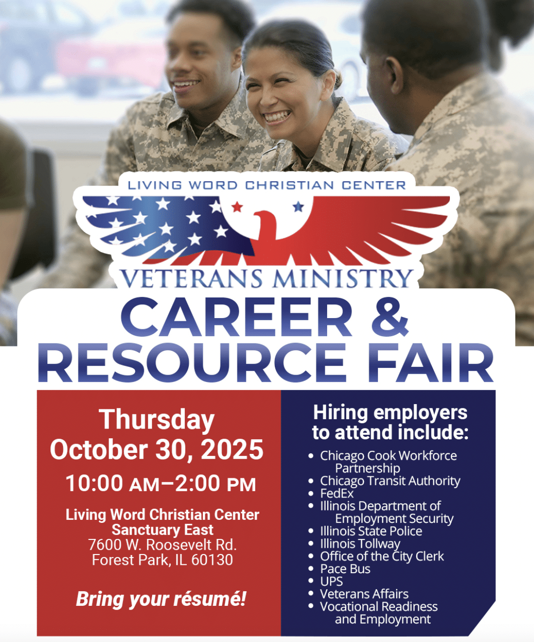 Employers to attend include: Chicago Cook Workforce Partnership, Chicago Transit Authority, FedEx, Illinois Department of Employment Security, Illinois State Police, Illinois Tollway, Office of the City Clerk, Pace Bus, UPS, Veterans Affairs, and Vocational Readiness and Employment.