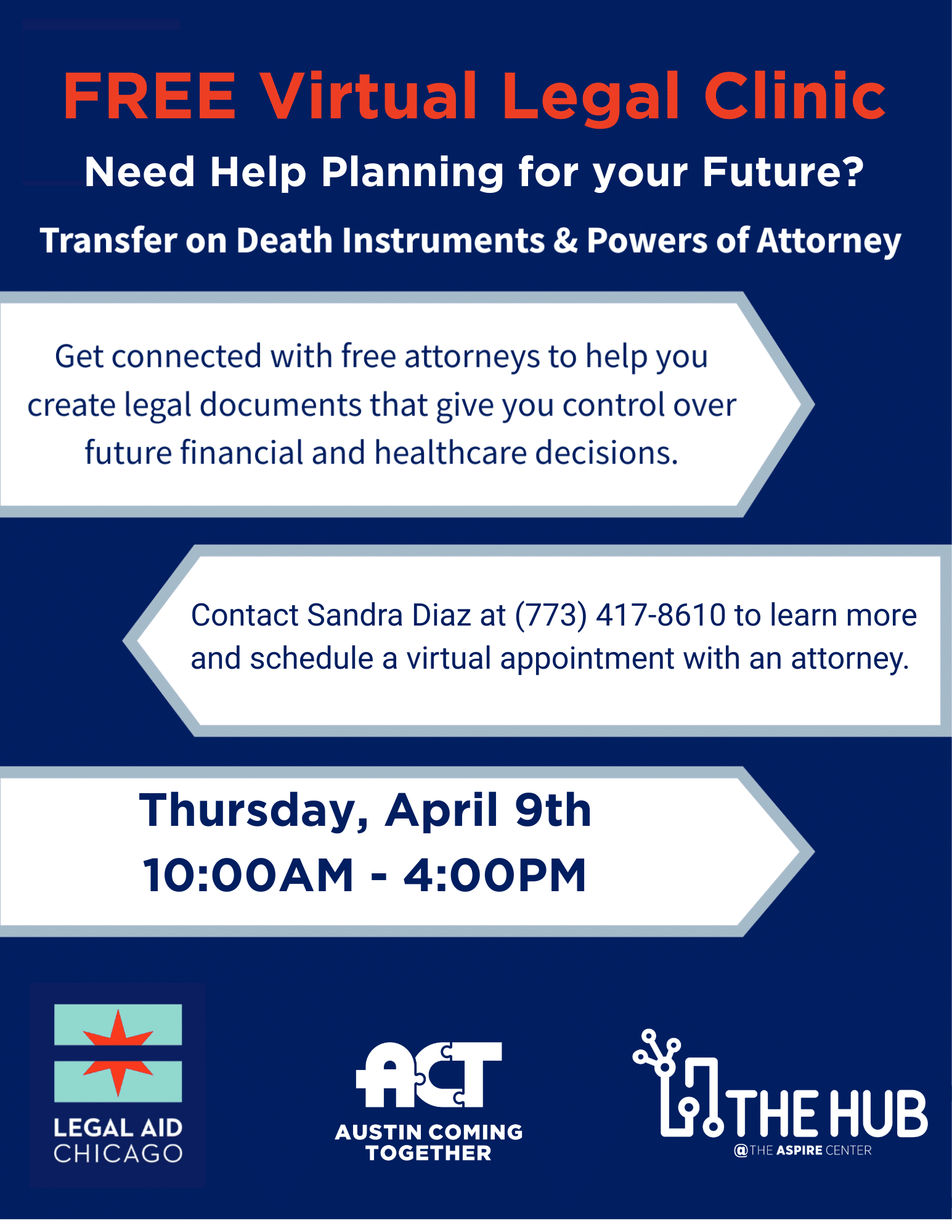 A FREE Virtual Legal Clinic hosted in partnership with Legal Aid Chicago. If you are interested, please register in advance to confirm eligibility. Qualifications include being a citizen or permanent resident of the US and being within the income guidelines. You can register by calling Sandra Diaz at (773) 417-8610. Click here to view the flyer.