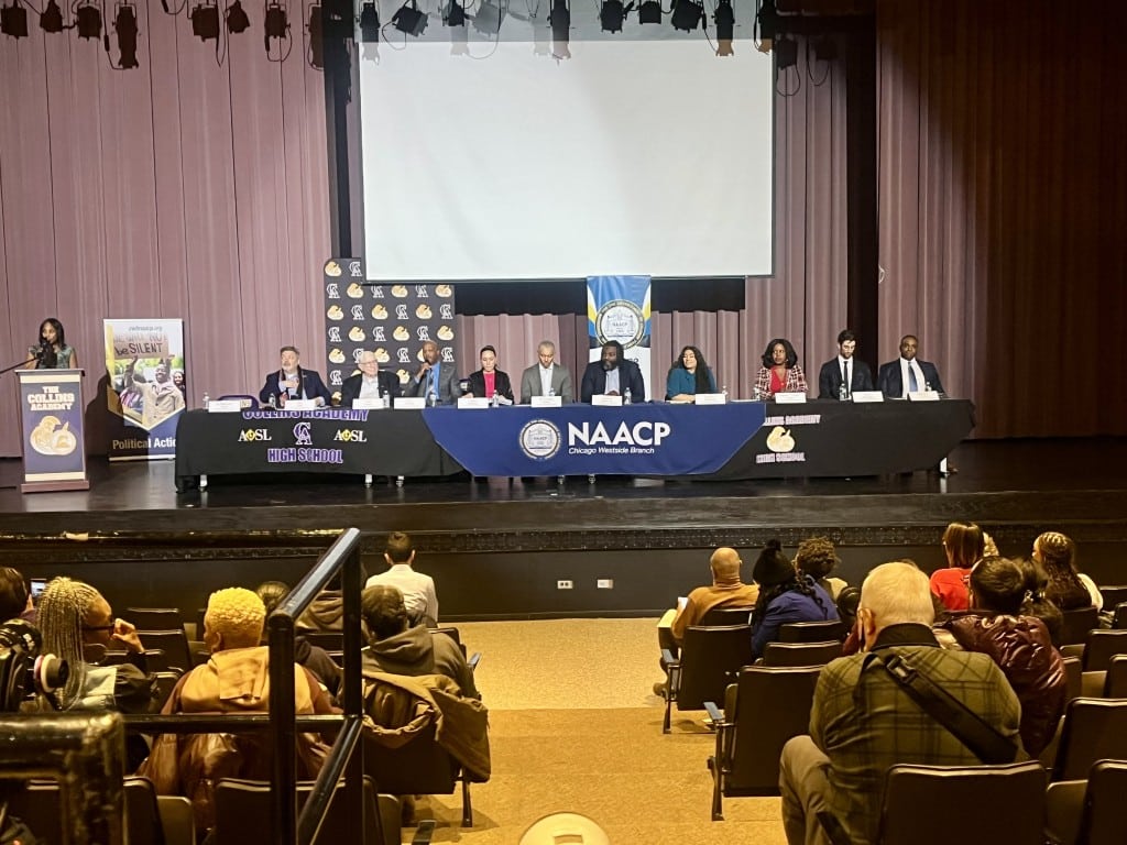 At least 100 people packed the auditorium of Collins High School, 1313 S. Sacramento Dr. in North Lawndale, on Jan. 27 to hear from 12 of the 15 candidates running to succeed longtime U.S. Rep. Danny K. Davis in Illinois’ 7th Congressional District.