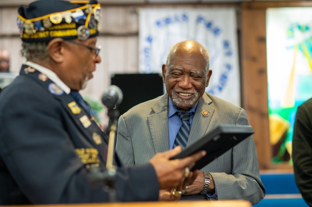 During the event, Davis recognized legendary radio host Cliffard Kelly, businessman and West Point graduate Kenneth Safford, and Vietnam veteran Sgt. Anthony Bingham III. Davis presented each honoree with an award acknowledging both their military service and their continued work on behalf of the community.